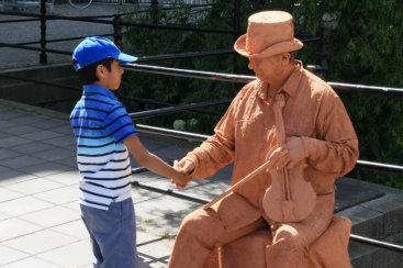 Der kleine Junge brauchte lange um ihm die Hand zu