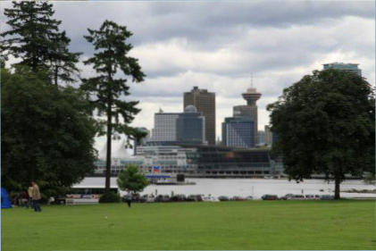 Da wir noch früh dran waren fuhren wir in den Stanley Park, von dem aus man einen Blick über die ganze Bucht und die mehr oder weniger schöne Skyline von Vancouver hat. Der Weg dorthin führte leider durch die gesamte Innenstadt, was mit dem Wohnmobil eine kleine Geduldsprobe darstellt.