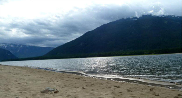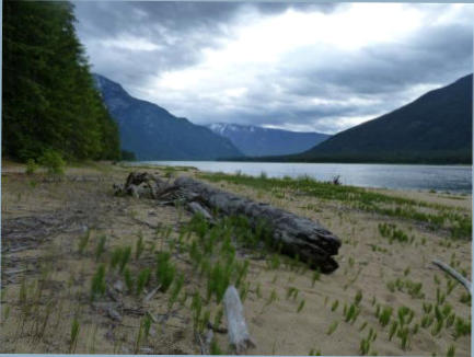 Wir fuhren also einige Kilometer zurück bis Needles - kein Dorf sondern eine Fähr-Anlegestelle. Diese brachte uns sicher (und kostenlos) auf die andere Uferseite. Von da aus waren es noch etwa 40km dem See entlang bis zu unserem nächsten Campground, dem Mc Donald Creek Provincial Park. Ein wunderschön gelegener Platz direkt am See und trotz des Namens weit und breit kein Fastfood. Die Stellplätze gross und gepflegt - bei schönerem Wetter wären wir hier nicht mehr weggekommen. Gegen Abend brach die Sonne durch und bot uns das wunderbare Schauspiel an Farben und Landschaft.