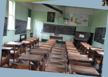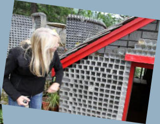 Entstanden ist dieses ungewöhnliche Bauwerk aus dem Umweltgedanken eines Leichenbestatters in den Fünfziger-Jahren. Er sammelte über die gesamte Zeit seines Arbeitslebens etwa 500000 leere Balsam-Flaschen und brachte es nicht übers Herz, sie einfach wegzuwerfen. So begann er im Jahr 1952 aus diesen Flaschen seinen Alterswohnsitz zu bauen. Dieses einzigartige Bauwerk zog dann aber so viele Neugierige an, dass es nach kurzer Zeit zu einer guten Einnahmequelle für den findigen Rentner wurde - rechts ein Bild aus der Bau-Zeit.