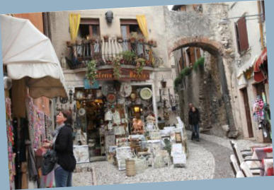 Bereits von weitem erkennt man die Silhouette der Festung von Malcesine. Wir campieren 2 km vor Malcesine auf dem Campingplatz Lombardi und machen uns zu Fuß auf den Weg in die Altstadt
