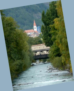 Die Holzbrücke über die Etsch erscheint recht zerbrechlich - scheint aber zu halten