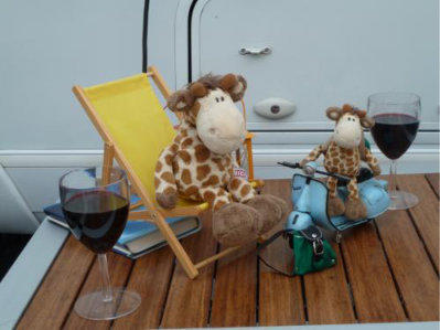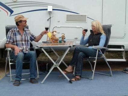 Am Abend versammelt sich die Crew wieder vor dem Camper und vernichtet gemeinsam die Bestände an ess - und trinkbarem