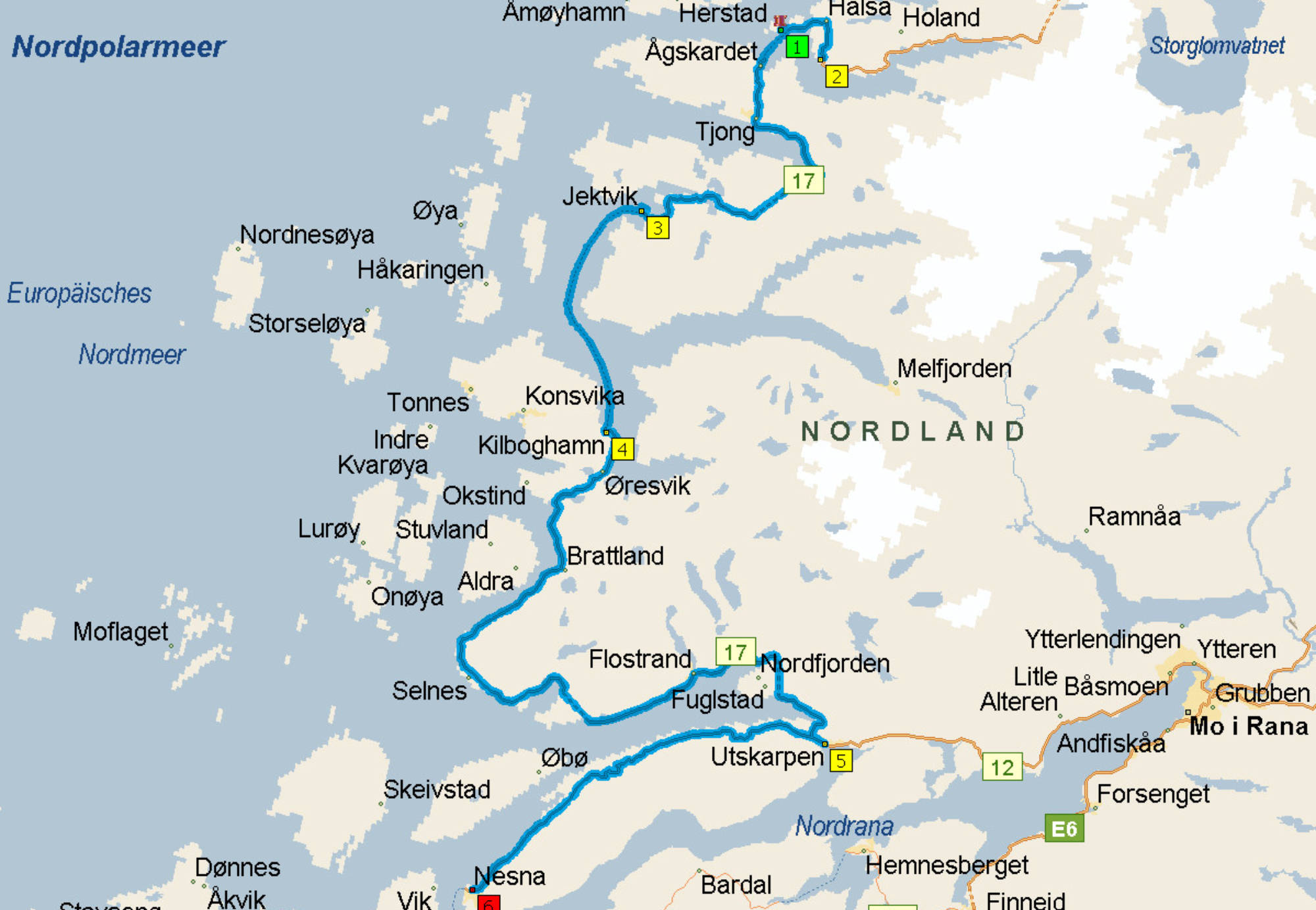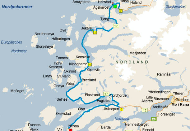 Achte Etappe : Svartissen-Gletscher bis Nesna (135km, 2 Fähren)