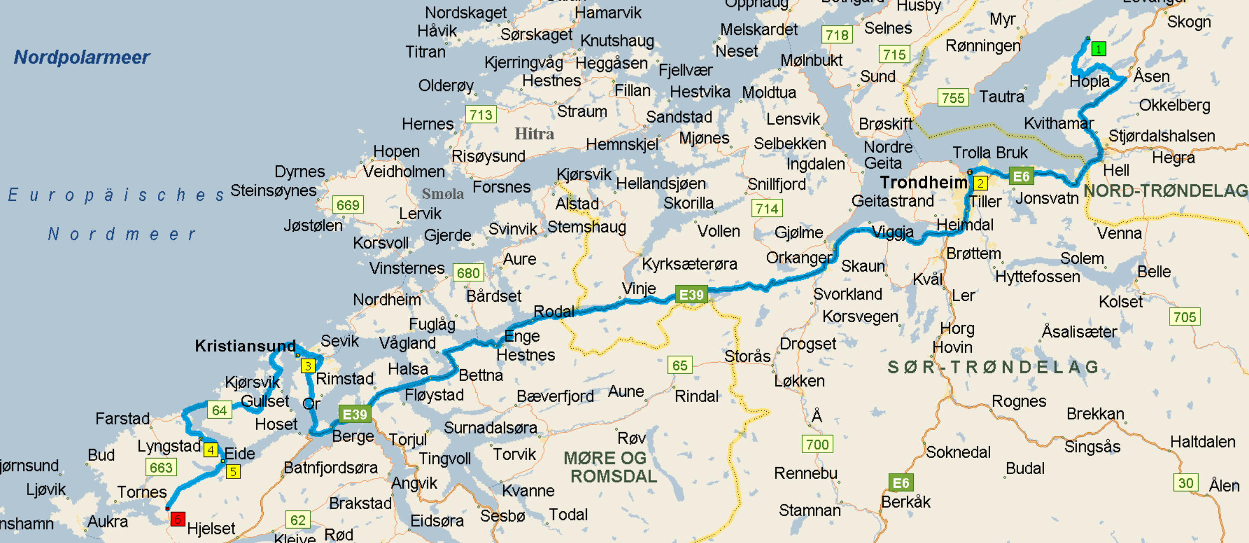 von Trondheim und die Fahrt bis Molde geplant. Aber dieser Tag sollte auch seine Tücken haben. Die