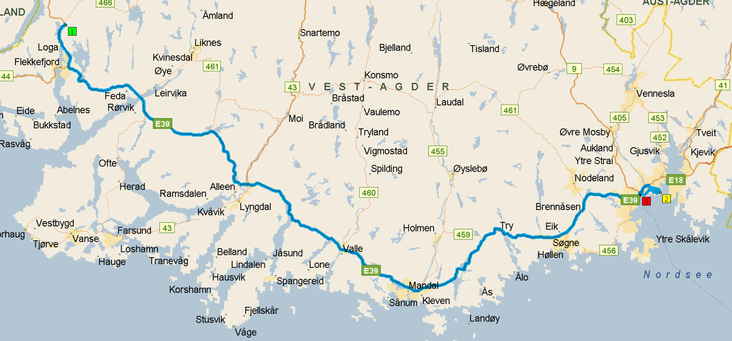 17. Etappe : Von Flekkefjord nach Kristiansand (120km)