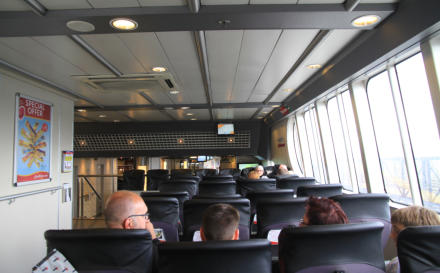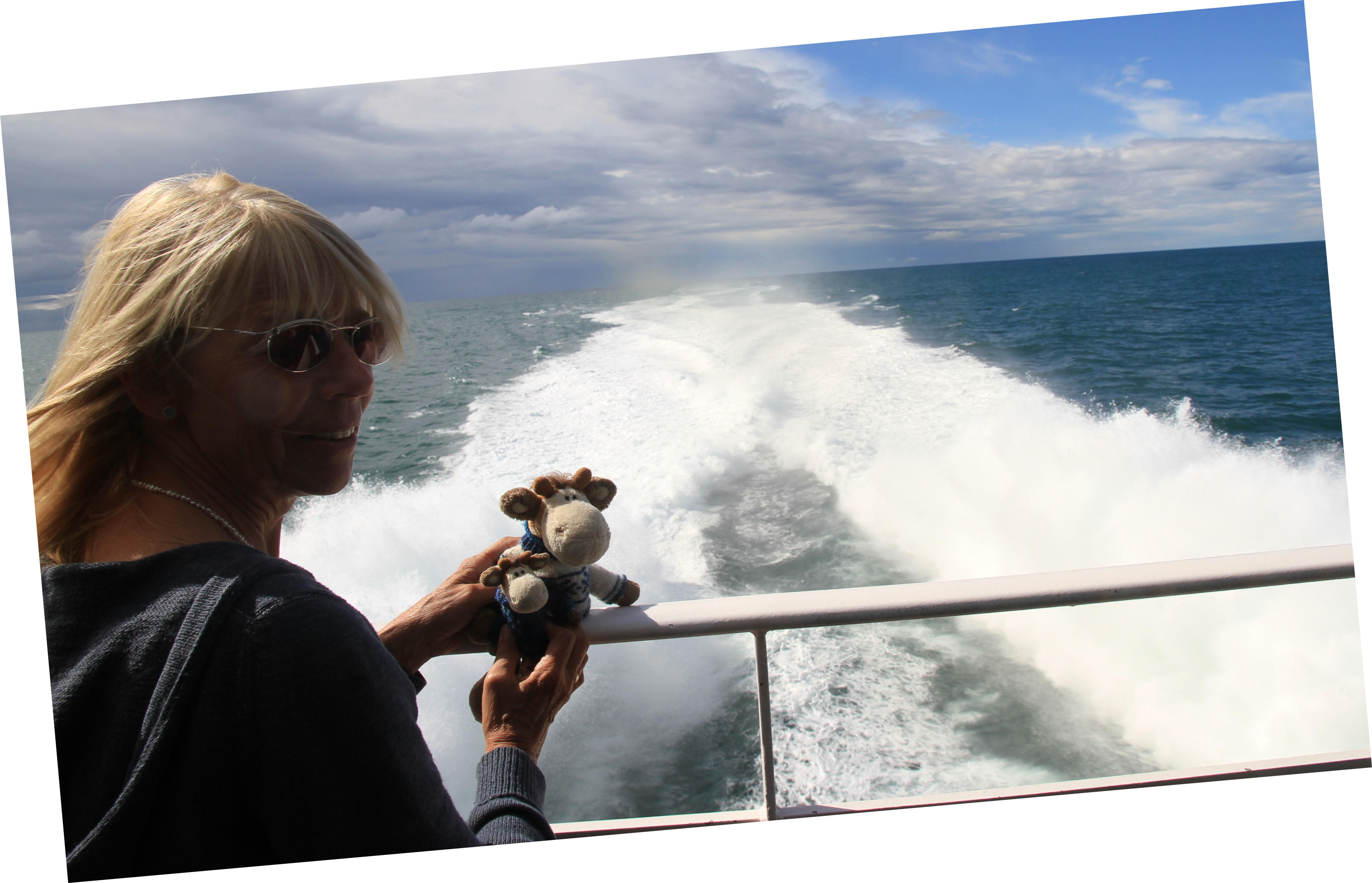 zum Glück ruhige See, unsere Nebensitzer erzählten, bei der Hinfahrt seien die “K-Tüten”
