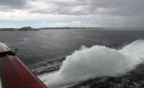 etwa 25km/h gab der Kapitän Gas und das Schiff beschleunigte in kürzester Zeit