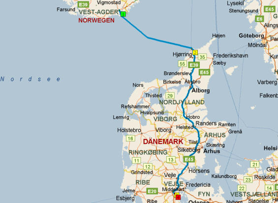18.Etappe : Mit der Fähre nach Hirtshals und weiter bis Kolding (285km, 1 Fähre)