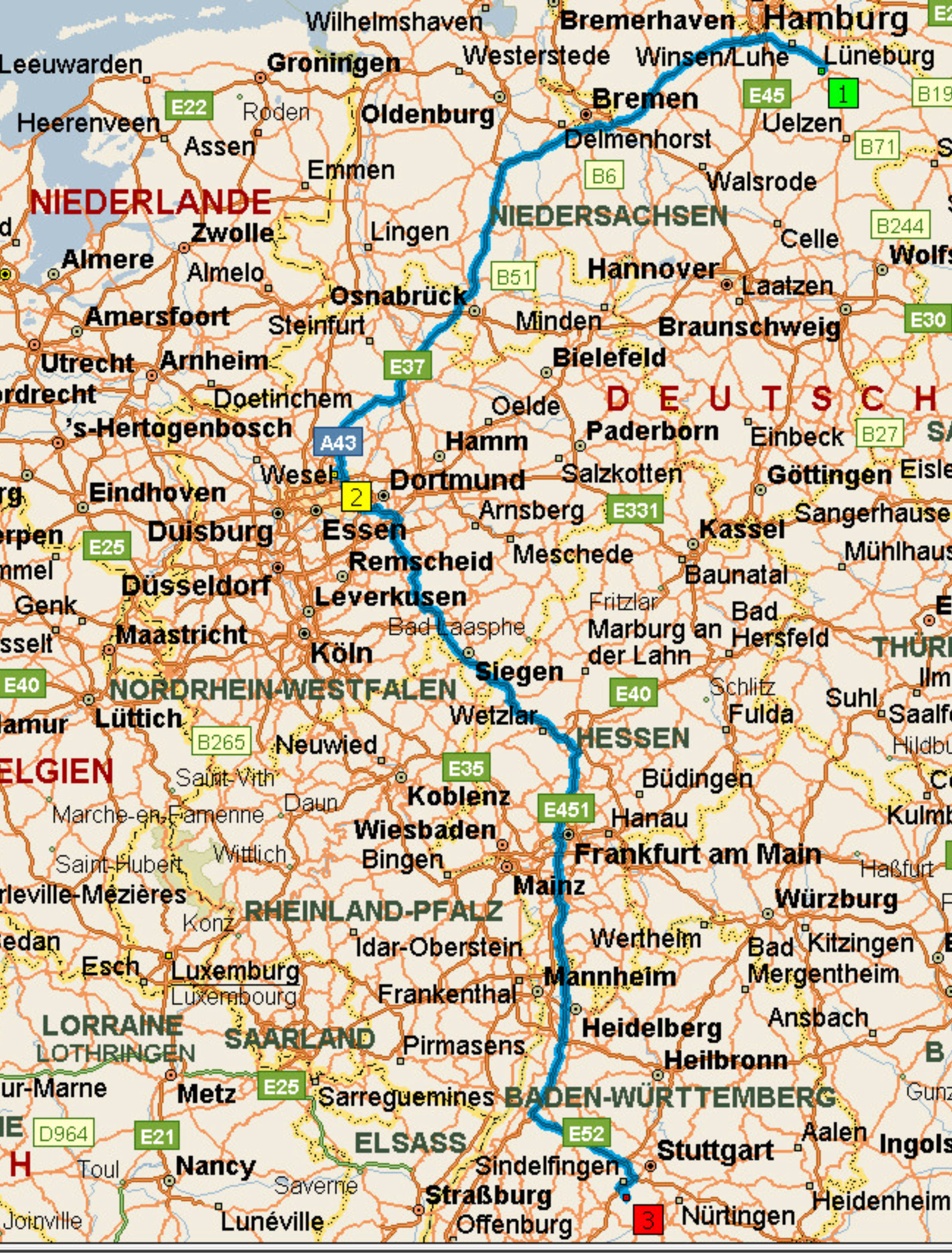 - wenn man nicht auf Landstraßen fahren möchte, die man in Deutschland als “geteerten