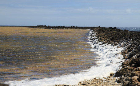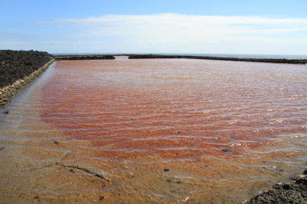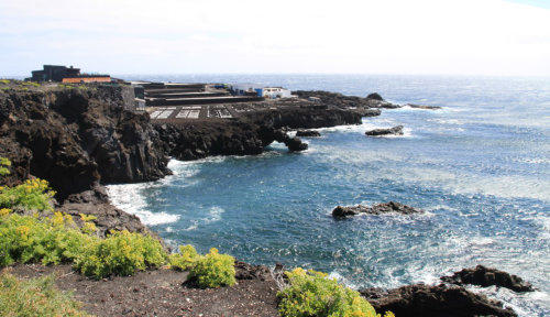 Unten am Strand liegt die einzige Saline von La Palma (Salinas Marinas), in der auf traditionelle Art