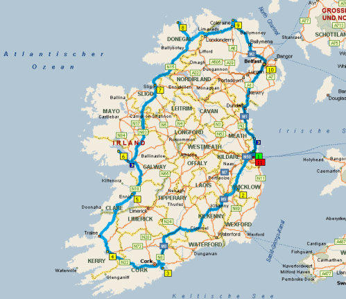 Die Sponsoren hatten 22-Tage “Fly and Drive-Rundreise” gebucht, mit Unterbringung an verschiedensten Orten auf der Insel. Ich, der Bienzle durfte mal wieder die Reiseleitung übernehmen, Unterstützung bekam ich mal wieder von meinem Assistenten (und Daddy) Yogi ... Diese Rundreise sollte aber alles nicht so einfach werden, da die 4 Jahreszeiten in Irland bekanntermaßen als Gegner nicht zu unterschätzen sind ...