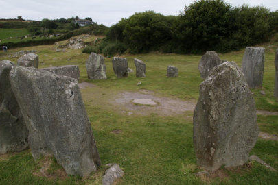 besteht aus 17 eng beieinander stehenden Steinen, von denen einer flach liegt (Opfertisch).