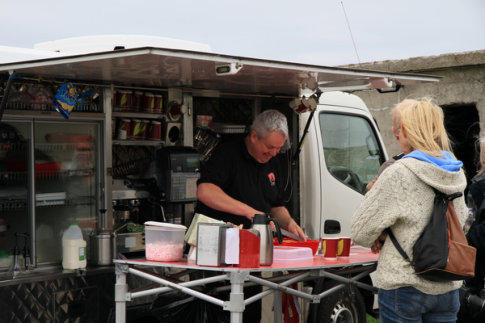 Imbiss-Ständchen am Parkplatz.