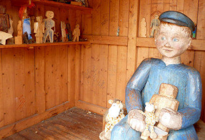 Holzmännchen schnitzend. Hier erfuhren wir dann auch,