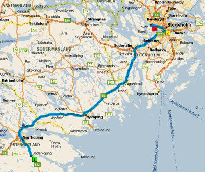Fahrt von Söderköping nach Stockholm