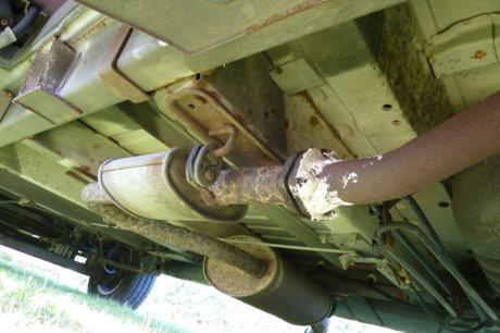 Jochen schaute unter das Womo und sein Blick sagte alles ... “das Auspuffrohr ist gebrochen -