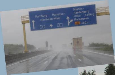 Auf der ca. 750km langen Gesamtstrecke regnete es durchgehend bis kurz nach der dänischen Grenze. Das Womo hatte den Dichtigkeitstest bestanden und die Scheibenwischer sind für Dauerbetrieb geeignet ... hier einige Beweisfotos ...