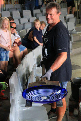 ... doch die Schale war noch viel zu heiß. Das Glas hatte noch eine Hitze von 500° und musste nun über