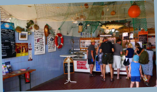 wöchentlichen Marktes am Hafen von Thiessow an.